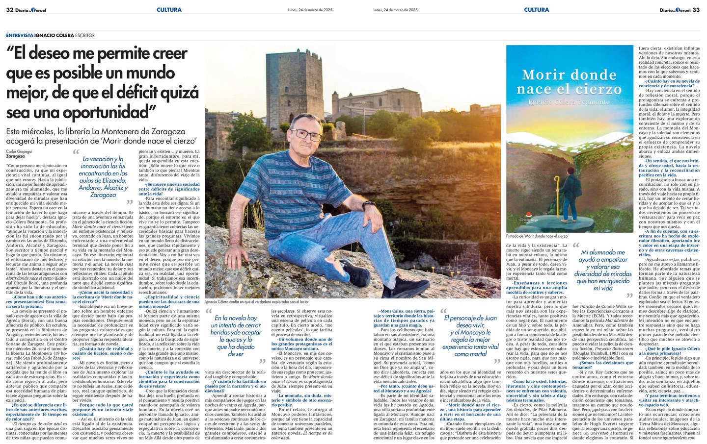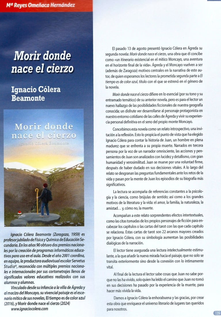 CÍRCULO ROJO.- Ignacio Cólera explora la complejidad humana a través de su libro, ‘Morir donde nace el cierzo’. “La novela enlaza el último ascenso de Juan hacia la montaña del Moncayo, con un viaje emocional y espiritual que incide en temas universales como el amor, la pérdida, la enfermedad y la búsqueda del significado de la vida”.